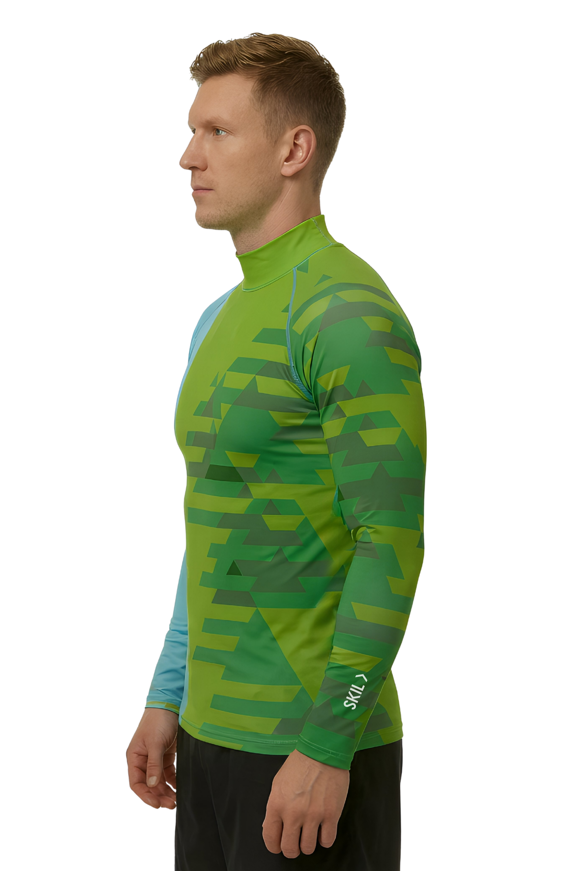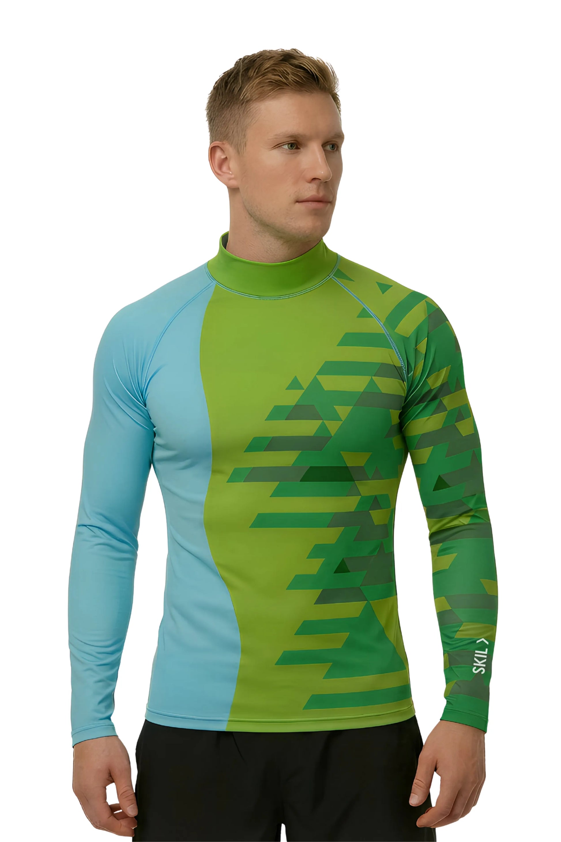 Comprehensive Coverage: A dedicated long sleeve rashguard men can rely on, featuring a high collar to shield the neck and extended sleeves for wrist protection.